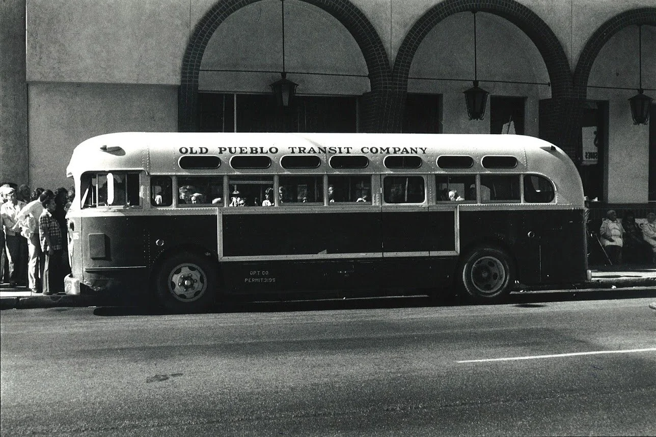 In 1949, Roy Laos and his Occidental Bus Lines company were in dire straits. Tucson wartime passenger traffic had surged far beyond what OBL’s fleet of Ford Transit buses could handle; even after the war, rapid population growth meant ridership demand remained high.