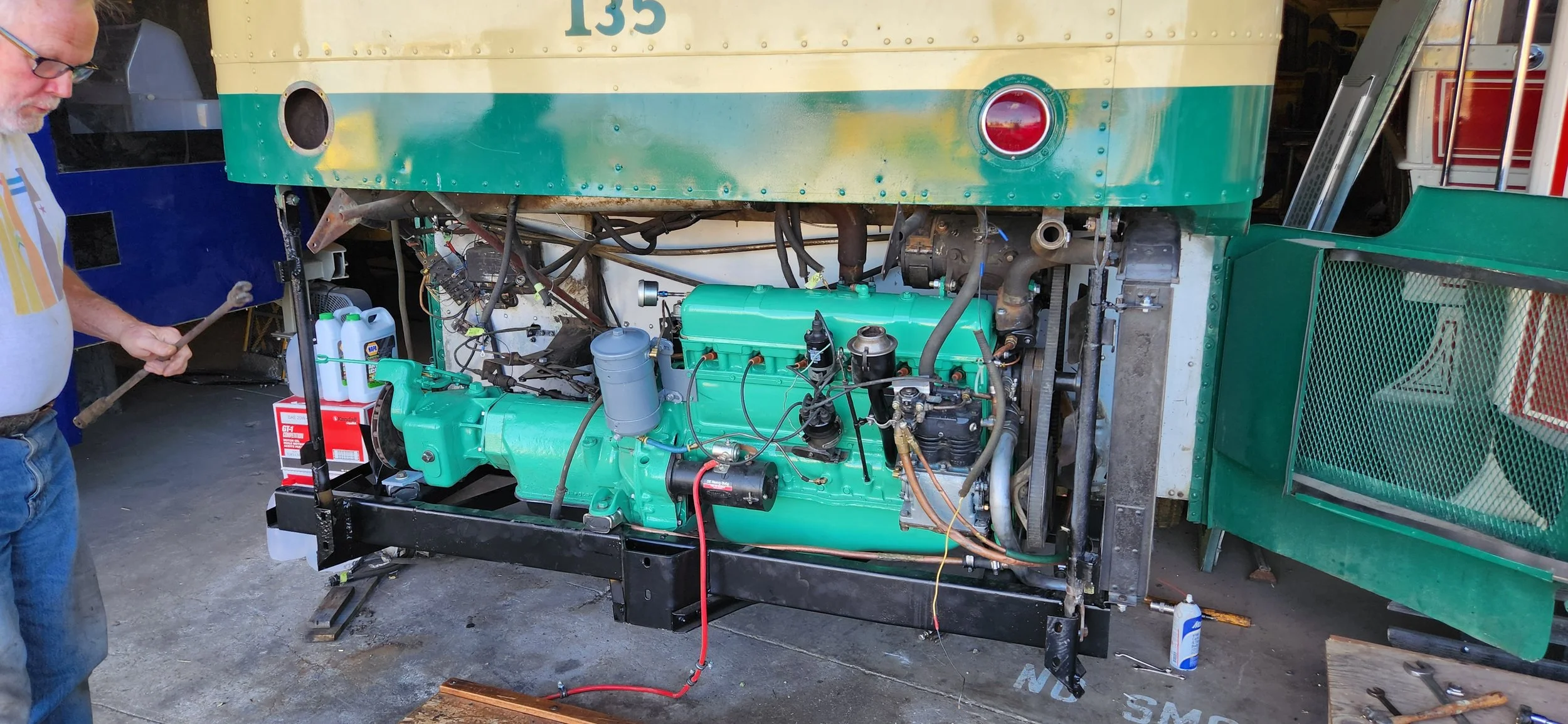 #135 is cosmetically restored inside and out. Engine and transmission have been rebuilt, although there are some shifting issues that need to be sorted out.