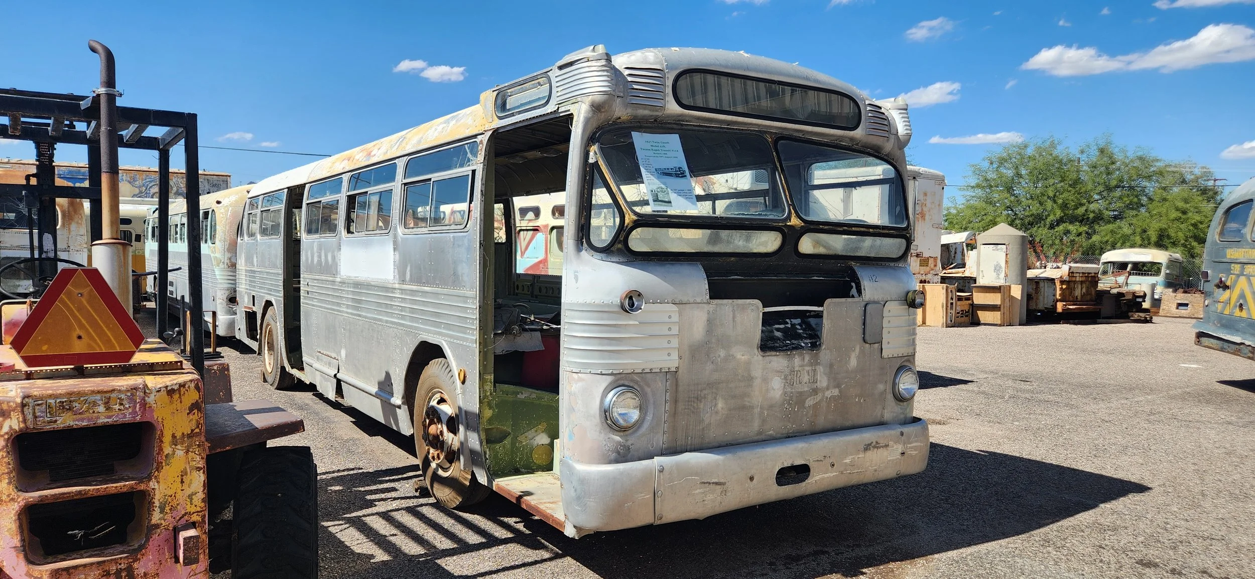 In 1968, upon retirement by the transit company, #112 was purchased by Alfred and Genevieve Coley who converted the bus to a motor home. After Mr. Coley’s death in October 1986 it was acquired by Cameron and Joyce Johnston who installed a manual transmission. Within a few months, they traded it to Kevin Driscoll, who started remodeling, but was unable to continue. In 1995 he donated the bus to Old Pueblo Trolley for preservation and restoration. It remains in our backyard, awaiting restoration.